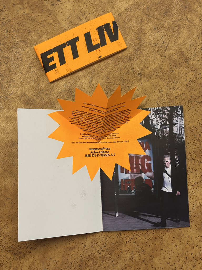 These posters have been bothering me since 2003. I first painted them with that italic font way back then: BUY A LIFE. LEAVE ME ALONE. But thought they looked stupid with that leaning font, so I never put them back up. I couldn’t get myself to throw them away either, so that giant roll of posters was just always in the way, giving me a bad conscience, and I kept thinking that I needed to get rid of them. I finally went out and put them back up in the adshels, and it was so much fun! So I took the posters I’d just removed back home and painted a new batch with the regular font. Looks good. Went to put those up immediately, but then you maybe see my problem. I had those new posters now that I’d just replaced. Was I supposed to just throw those away?